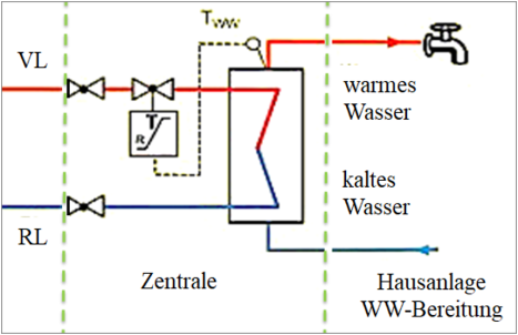 Nutzung von Plattenwärmetauschern zur Warmwasserbereitung.