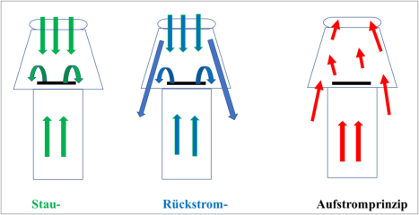 Bei Feuerstellen mit offener Verbrennung sind Strömungssicherungen, auch als Zugunterbrecher bekannt, vorgeschrieben. Sie müssen in allen Brennern ohne Gebläse vorhanden sein, um sicherzustellen, dass die Verbrennung nicht durch Rückstau, Gegenströmungen oder Schwankungen im Luftzug beeinträchtigt wird.