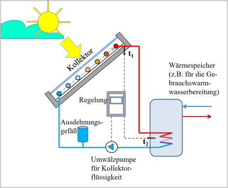 In Heizungsanlagen wird Sonnenenergie direkt mittels thermischer Solarkollektoren genutzt. In den meisten Fällen sind zusätzliche Speichersysteme und konventionelle Wärmeerzeugung notwendig.